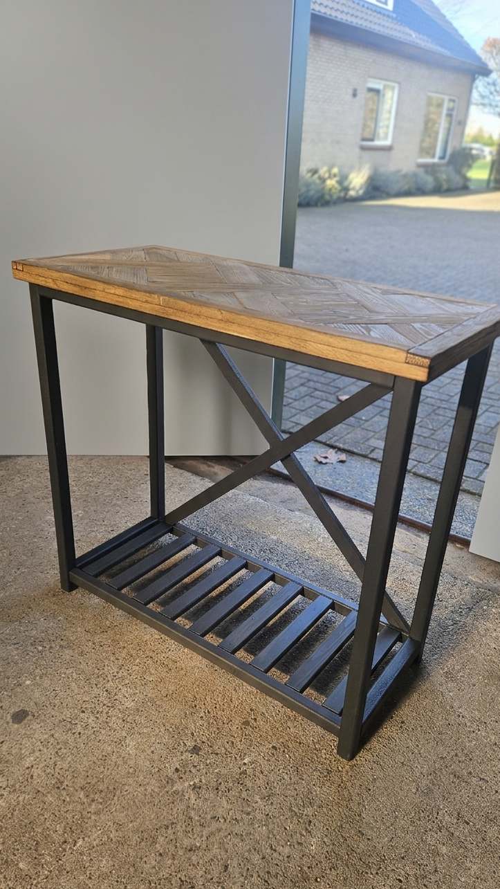 Onderstel met raster en kruis aan de achterzijde afgewerkt in Cast Iron kalkmat zwartgrijs.